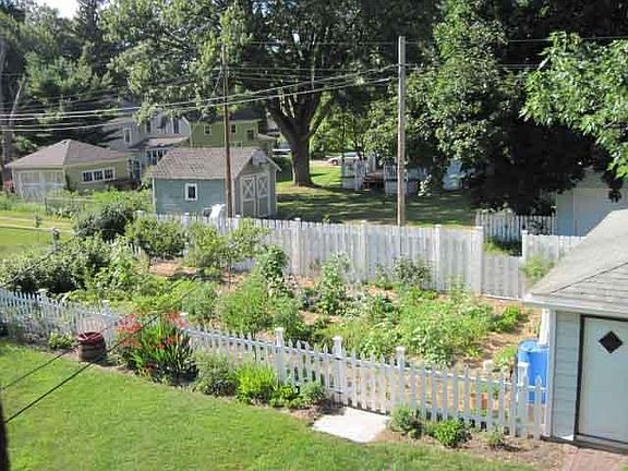 Gardener's take DELIGHT! Current owners have created spectacular floral showcase complete with fruit trees, raspberries, native plants, herbs, compost bins & rain barrels in a fenced garden space. Remarkable landscaping encompasses the home and its additional lot, adding to the ambiance of this quiet neighborhood. Charming throughout, this solid brick home features hardwood flooring, wood burning fireplace in living room, built-in hutch in dining room, cedar lined closets, and completely remodeled bathroom. Main floor master has hardwood flooring under carpet. 3 bedrooms upstairs are tucked into the varied roof lines. New roof in May 2010 plus add'l insulation & new basement windows increased the energy efficiency. Newer 90% efficient furnace and new water heater in 2009. Detached 2 car garage with new doors is extra deep with workshop area. Full basement provides plenty of dry storage, laundry area with newer double laundry sink & Kenmore washer & dryer. Make your appointment TODAY!