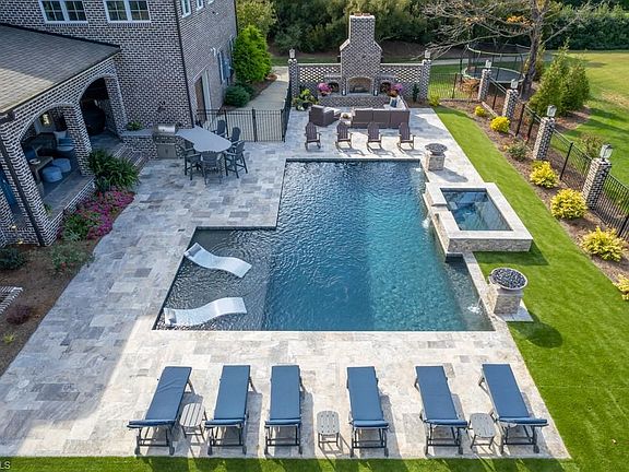 Chip and putt just outside your back door on a country club practice facility! This stunning home features a gourmet kitchen with a 60 inch built-in refrigerator, Thermador range with 6 gas elements and griddle, and an expansive kitchen island. The main level primary bedroom includes a spacious closet with an island. Primary bath has a 2 person tile shower and soaking tub. Upstairs you’ll find a second primary with a private adjacent entertainment room. The bonus room includes a 4k projection system, with custom sound system, and remote controlled black-out shades. The pool features a tanning ledge, large hot tub, custom water features, and gas powered fire bowls. The large travertine tile patio includes a wood burning fireplace with a spacious sitting area. This is the builder's personal home!