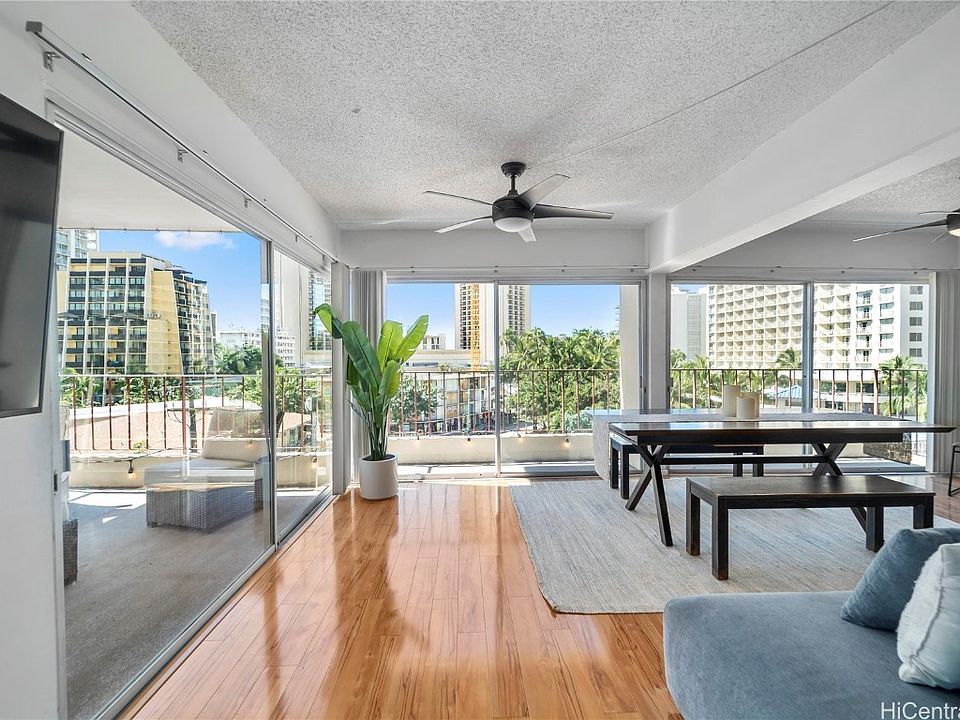 A rare opportunity that includes space & parking in Waikiki! This condo has a lanai you will never want to leave that seamlessly integrates with the expansive living space, offers panoramic views of the cityscape & cooling cross breezes. Split floor plan offers privacy between the primary suite & additional bedrooms. An open floor plan ensures a seamless flow between living & dining areas, creating an environment comfortable for all. The primary suite, with its own en-suite bathroom, is located on one side of the unit providing the utmost in privacy. The additional bedrooms share a bathroom, ensuring a harmonious living experience.