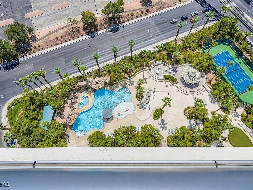 Expansive Strip & Mountain Views from this Gorgeous 1 Bedroom Condo located in Luxurious Turnberry Towers West. Plenty of natural light flowing through this open space concept condo. Kitchen w/ stainless steel appliances, granite countertops along w/ eat-in countertop. Primary suite w/ custom walk-in closet, built in wall safe & ensuite bathroom w/ a Jacuzzi tub. New light fixtures in kitchen/living room & a Gopher water protection device. Spacious balcony to relax and take in the iconic Las Vegas Strip. Luxury amenities at Turnberry Towers to include 24/7 guard gated security, concierge, valet, tennis/pickleball courts, lagoon pool w/ waterfalls, real sand beach, putting green, conference room, business center, pet stations & electric charging stations. Only one block from the iconic Las Vegas Strip & walking distance to monorail station. Close to Freeway, airport and shopping. Comes w/ storage unit - basement level.