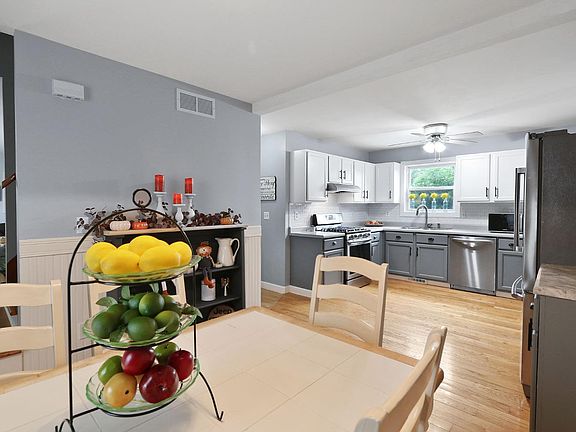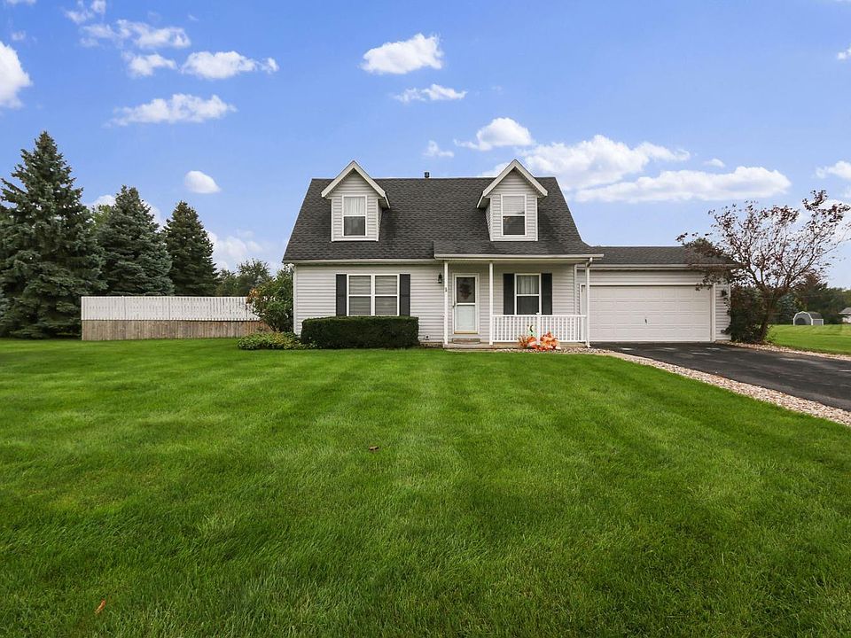 Get ready to FALL in love with this Charming cape cod on a private one acre lot! The recently updated kitchen includes stainless steel appliances, white subway tile backsplash and a sizable dining area. Multiple main floor living spaces create private areas for a variety of activities. On the second floor are all 3 bedrooms and a full bath. Back to the main level, the cheery rec room is enhanced by an electric fireplace and sliding glass door leading to an outdoor space full of amenities. Starting with the main deck, you will find an envious outside living space with plenty of room for furniture and grilling. Just two steps up is another deck completely surrounding the oversized pool. Additional patio space houses the 6 person hot tub and all of this is completely surrounded by privacy fencing. Mature trees provide even more natural screening. Unfinished basement houses the laundry area and is ready for future living space with rough in plumbing for a 3rd bath.