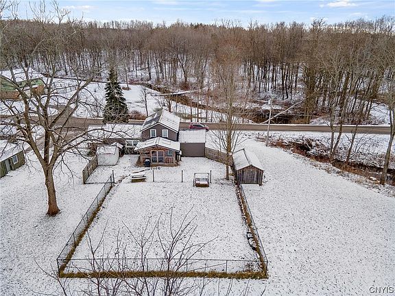 Charming and unique old-style home for sale located in New Haven, NY and in the Mexico School District. This amazing property is situated on a small antique apple orchard overlooking the beautiful Butterfly Creek with a total of 5.72 acres! This adorable home features three bedrooms, one full bathroom and one half bathroom. Open living and dining combo with eat-in country kitchen and all appliances included. First floor bedroom with dual closets and full bathroom for convenience. Large walk-in pantry space with the possibility to be transformed into your very own laundry room. Roughed in "outhouse" half bath for guests to use! Enclosed and heated back porch for entertaining or relaxation. Two additional bedrooms located on the second level of home. Some additional interior features include the updated light fixtures and recessed lighting with dimmers, appliances, 3 sided dog house with built in dog door AND MORE! Some additional exterior features include the one car detached carport, two outdoor sheds, enclosed workshop and fenced in backyard. Many major home updates include the siding, roofing, windows, flooring, interior paint, plumbing, electrical AND MORE!