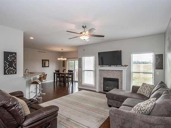 Beautiful open walkout ranch on private lot at end of cul-de-sac, backs to common area & trail! Welcoming entry to great room w/hardwood flrs, gas fireplace/tile surround & mantel. Kitchen w/granite countertops, subway tile backsplash, s/s appliances, & raised breakfast bar & locker area w/built-ins! Dining area w/sliders to screen porch leading to deck & stairs to fenced in back yard! Spacious master suite w/lg walk-in closet, dual sinks, soaking tub & tile shower. Huge LL w/ sunny Fam Rm, bath & 2 bdrms.