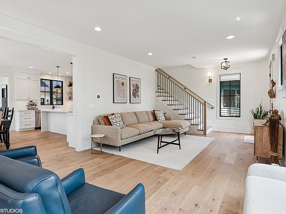 Built in 2022, this exquisite custom home is equipped with 9' ceilings, white oak flooring, detailed millwork, and elegant Marvin windows with custom Bali shades throughout. The interior features high-quality solid core doors with black hardware for contemporary appeal. The open concept kitchen is designed for culinary enthusiasts, featuring Viking appliances and bespoke cabinetry. The dining area includes a built-in banquette, enhancing the home's charm. The family room and living room, both adjacent to the kitchen, are ideal for entertaining, complemented by a gas fireplace, a powder room, and a drop zone with built-in storage. The upper level houses a spacious primary bedroom with vaulted ceilings, a walk-in closet, and an elegant bathroom with marble floors and double sinks. There are also two additional sizable bedrooms, each with walk-in closets, along with a full hall bath, laundry room, and linen closet for extra storage. The house boasts dual zone heating and air conditioning, a furnace humidifier, and a basement with epoxy floors suitable for storage or additional living space. The private backyard features a Unilock paved patio and professional landscaping. The insulated and finished two-car garage includes dual zoned heating/ac, recessed lighting, and epoxy floors. Above the garage, there is a flex space that would make an excellent office or recreational area. Exterior maintenance is streamlined with cement board siding and leaf filter gutter guards. Excellent location within walking distance of downtown Geneva, parks, schools, and the Fox River trail. Make this your dream home!