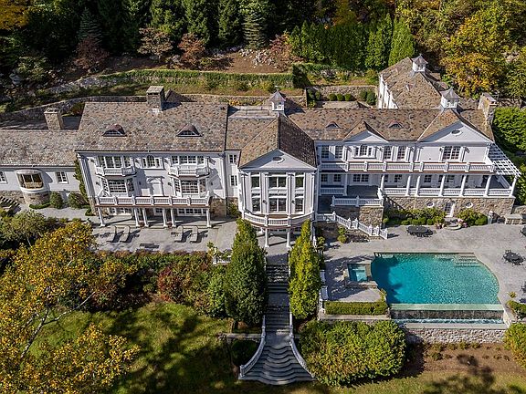 Iconic Lower Weston Georgian Colonial 10 acre property, affectionately named '"October Hill", has been masterfully curated & renovated to the highest of standards. The impressive & sophisticated interiors of this luxurious home complement the 6 bedrooms, 8 spectacular bathrooms, 4 powder rooms & magnificent chef's kitchen. Everything about this manor's design & function is artful & elegant. The original owner was a Swedish diplomat & World War II industrialist who "custom crafted" the home to elaborate standards. The current owners of 25 years followed suit & completed an addition with exquisite period detail adding every desirable amenity & sparing no expense on construction. Extraordinary formal rooms with exquisite paneling along with a gracious entry hall, elegant staircase & impressive finishes set this home in a class by itself. Exceptional master suite with 2 luxurious bathrooms & dressing rooms further distinguish this 10,000+ sqft home. The lower level includes an "Old Hollywood" movie theater, ornately paneled pub & game room, wine cellar & guest suite which all open to the stone terrace, infinity-edge pool, spa, cabana, summer kitchen & pool-house. The expansive wrap-around balcony offers unmatched outdoor living spaces overlooking the abounding private grounds, pond & 679 ft of Saugatuck River frontage with beach. This truly exceptional country estate offers a unique opportunity to make every day as luxurious as staying at a 5-star hotel.