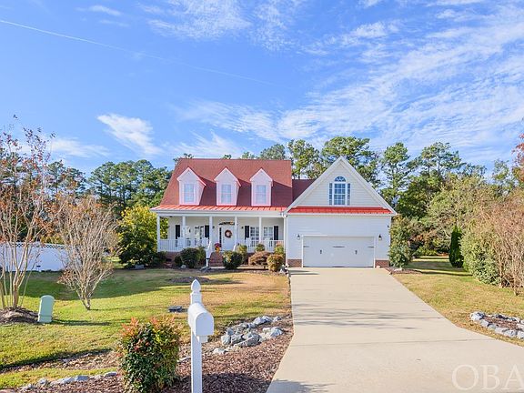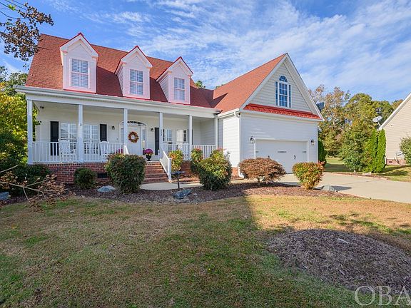 Welcome home to this beautiful Cape Cod in the sought after Riversedge neighborhood of Moyock. This home sits on one of the highest lots in the subdivision in a cul-de-sac and backs to a serene tree line. Featuring 4 bedrooms and 3.5 baths this home boasts tons of natural light, many smart home features, formal living and dining, dedicated office space, 2-story great room, spacious first floor primary, large deck, large storage shed, finished bonus room or 5th bedroom, unfinished bonus room, and much more! Neighborhood amenities include boat ramp, multiple docks/piers, walking trails, playgrounds, tennis court, and club house. Call today!