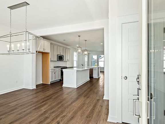 Popular double porch Barton plan. Open first floor with LVP, large kitchen island with large peninsula, stainless appliances (including stainless refrigerator), gas stove, rear porch. Second floor has 3 bedrooms with the primary bedroom facing and HOA pond and has access to the second floor porch. Lots of other upgrades in this one.