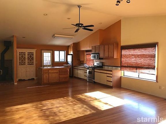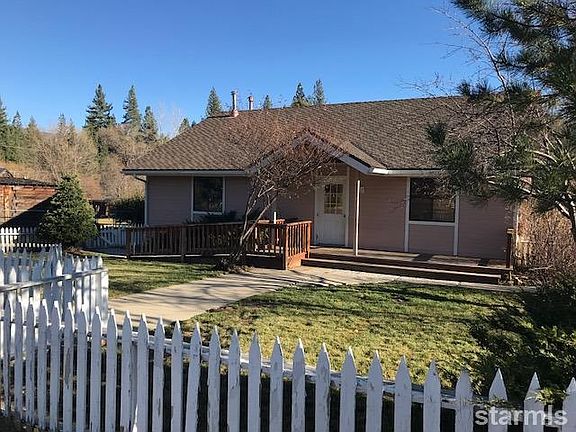 Nice home located within walking distance of downtown Markleeville. This home offers a great room type of floor plan with the spacious living room and kitchen, as well as cozy family room (with woodstove) all flowing together. The master bedroom is located at the back of the home and has french doors to the patio & pleasant backyard. There are 3 additional bedrooms, a two car garage, room for parking a smaller RV or travel trailer. Some mature trees, lawn and fenced front with pickets and back with chain link and redwood. This home is very close to the public library and Markleeville Creek. Beautiful hardwood floors.