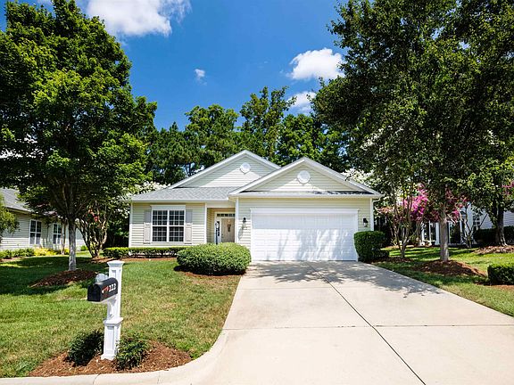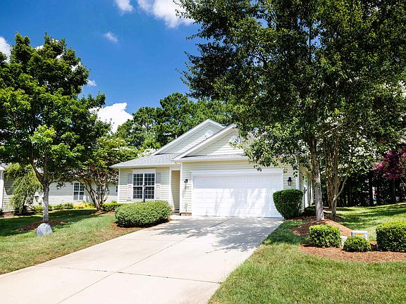 Gorgeous! This home is perfect for those looking for privacy and convenience. Ideal location in the Heritage Pines 55+community of Cary. Beautiful floor plan with open foyer to living room & dining room or flex space. Hallway to private guest suite with walk-in closet and full bath adjacent. Convenient laundry room and plenty of storage closets, plus garage storage. Beautiful hardwood flooring throughout most living areas. Kitchen with white cabinetry, granite counters, breakfast island, SS appliances plus pantry. Informal dining area open to family room with gas fireplace and beautiful treed views. Patio with views of pond, sparkling through the tree line. Master bedroom with walk-in closet, private bath w/tub & shower. HOA provides lawn care, along with pool, clubhouse, gym & tennis courts. This home has had many recent updates: New Roof (’20), New Heating & A/C (’22), New pro grade Water Heater (’21), Whole house exterior painted (’20), All Windows with New Blinds (’22), New LG Washer & Dryer (’21) plus New LG Refrigerator (8'23) & more.