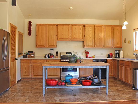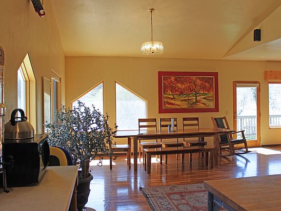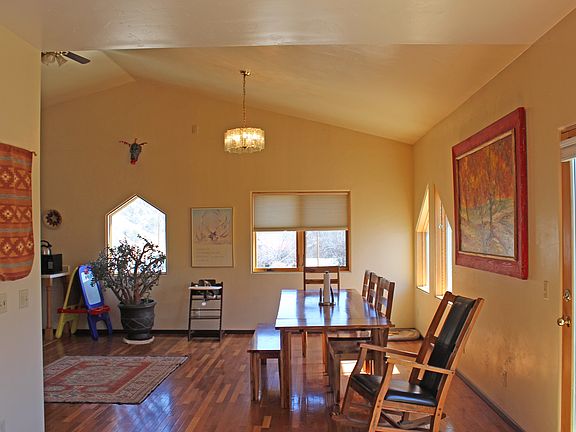 Rare custom home in-town Dolores. Built in 2007 - this recently upgraded home features four bedrooms, three baths, high ceilings, oak floors, large deck, plenty of storage space, four car garage, and great views. Wow! Thoughtful design and details that include a private guest suite, workshop, mud room, office, art shelves, and Santa Fe plaster. The 6125 sqft lot is at the end of the street, at the base of sandstone canyon wall . The professionally designed and engineered building features include Structural Insulated Panel (SIP) and insulated concrete form (ICF) walls, numerous south-facing windows, energy efficient window shades, and overhangs designed for summer shade. Outdoors you will find raised garden beds, producing apple, cherry and peach trees. Recent upgrades includes- - All New heating system - Installed 10 kW solar photovoltaic system and upgraded electrical system accordingly - Installed ductless mini-split heat/AC system - Installed new hot water system- Remodeled bathrooms on middle floor - Installed solid wood interior doors - Installed library shelving in "office" - Upgraded cabling for TV and Internet - Replaced various light fixtures - Replaced gutter and downspout for south side of roof with maintenance free gutter system. Restaurants, shopping, the river and K-12 schools are all within four blocks.Property is outside of the flood plain (zone X), so flood insurance is not required.