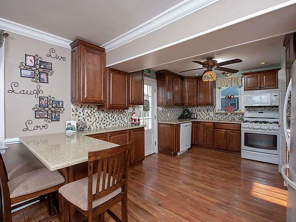 This house feels like home from the minute you pull up. A welcoming front porch that wraps around the entire side of the house to the spacious back yard oasis. Plenty of room to lounge and barbecue, and even room to add a pool. Inside, you will feel right at home as you enjoy the open floor plan ,cozy fireplace with room for the entire family. A first floor bedroom and full, newly remodeled bathroom can serve many purposes, a playroom, guest room, man cave, a teenagers bedroom, or an office/den. There is a quaint nook under the stairs that has a built in desk/computer station with lots of storage for paperwork to stay tucked neatly away. Upstairs, you will find 3 more nice sized rooms with another gorgeous bathroom. There is plenty of closet space, an abundance of natural light and the feel of a house well loved. Come see for yourself, schedule your private showing today!