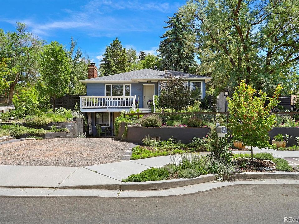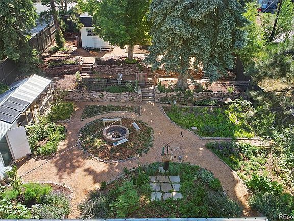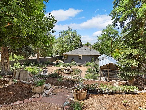 Exceptional restoration in the Craig and Goulds neighborhood of downtown Castle Rock. Extensive perennial landscaping surrounds this gorgeous hand crafted remodeled home offering 2 bedrooms, 1 bath and a walk-out finished basement. Step up to the welcoming covered front porch and inside to the living room with a cozy vented brick wood fireplace with gleaming white oak hardwood flooring flowing throughout the main level and a pocket French door leading to remodeled chef's kitchen. This kitchen is a delight with stainless steel appliances including a gas cooktop, gorgeous upgraded cabinetry and woodblock countertops, and upgraded fixtures are all included in this complete remodel. Dining room has abundant light from the many storm windows. New stairs lead down to additional living space in the family room in the finished walk-out basement with a newly resurfaced and stained concrete floor and built-in shelving. Stunning remodeled full bath offers slab granite over the custom built vanity, upgraded fixtures and tile flooring. Fantastic laundry room is large with a window and tons of storage space in the built-in shelving system and a small cubby storage room under the stairway. Workshop provides cabinets, work bench and shelves. Additional amenities include new: electrical in basement, lighting, plumbing, doors, baseboards and door casings. Truly magnificent outdoor spaces! English dream garden boasting complete new landscaping with stacked stone retaining walls and a water feature. Enjoy your beautiful outdoor living space with a fire pit, amazing established flower beds focused on returning perennials, veggie gardens, mature trees, fruit trees, new privacy fencing, paths and flagstone walk-ways. Spacious oasis offers large walk-in chicken coops with a secured run plus a utility shed. Convenient location! Short walk to dining, retail, park & trails. Close to shopping, open space, easy access to I-25 & in the Douglas County School Dist.