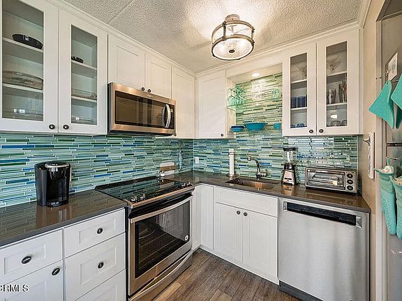 The Cabana de Mar building offers private beach and boardwalk access, and is fully gated, with parking available under the building and additional overflow parking across the street. This unit was recently updated with LVP flooring, modern bathrooms, white kitchen cabinets, solid countertops, stainless steel appliances, and a tile backsplash. The kitchen is fully equipped and turnkey. A washer and dryer are included. The HOA is in the process of replacing the sliding glass doors and windows, and it covers master insurance, exterior maintenance, pest control, and the exterior was freshly painted last year.