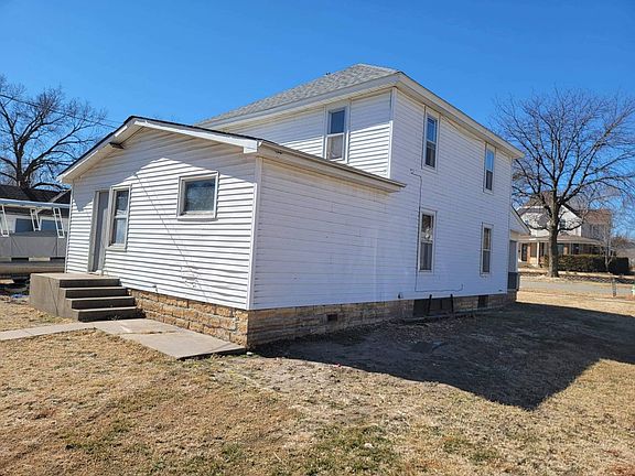222 N Chestnut St. Beloit, Kansas On a corner lot at 222 N Chestnut St, Beloit, Kansas, this grand old house from 1900 is a great project house. The kitchen has tile flooring, painted cabinets, and a large hall closet for a pantry. The living room and dining room has wood and carpet flooring and wall paneling. This is a four bedroom, two bathroom house. The Master suite consists of a nice sized bedroom, with an adjoining room with large closet and room length vanity. The shower and toilet are separated from the vanity. The second floor has three more bedrooms and one bathroom. There is a wall heater and window air conditioner on this floor. The back entry serves as a laundry room and has the stairway leading to the basement. The partial basement is unfinished with a concrete floor. The central heat/AC unit and water heater are in the basement. There is a large storage area. There is a single unattached 24x16 garage. The lot is 45x143. House: 1900 Main Floor: 1,066 Sq Ft Second Floor: 728 Sq Ft Lot: 45x143 Property Tax: $759.56 LISTING PRICE: $60,000