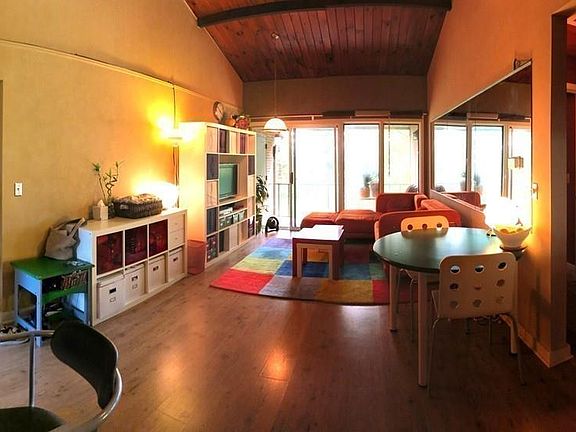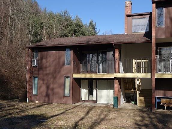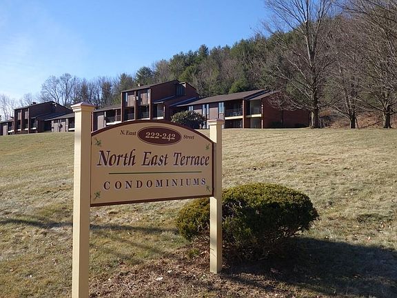 Move-in ready! This 2nd floor, garden style condo with a contemporary flare, (insulated) cathedral ceilings, enjoys a bucolic setting & postcard views of Pelham Hills & Holyoke Range. Tucked away on the south facing, back corner of a Northeast Terrace bldg., the unit enjoys besides sun, privacy and peace, yet in minutes you are in the hustle & bustle of Amherst Center & UMASS. Freshly painted, 2 bedrm, 1 bath condo sports an open concept LR + DR with lg. mirrored LR wall + overhead ceiling fan & slider to covered balcony; 2 installed, window A/C units; built-in cabinetry in utility/pantry room, tiled bathroom, plus pull down attic. Other perks include: low heating costs*, due to central, Buderus, oil heating system, new roof, new balcony & stairway to backyard. Laundry & storage units are conveniently located in basement of building.