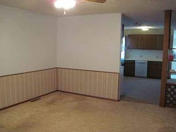Quaint 2 bedroom with detached garage, the home has nice kitchen cabinets, ceiling fans, central heat and air, privacy fence and new carpet.
