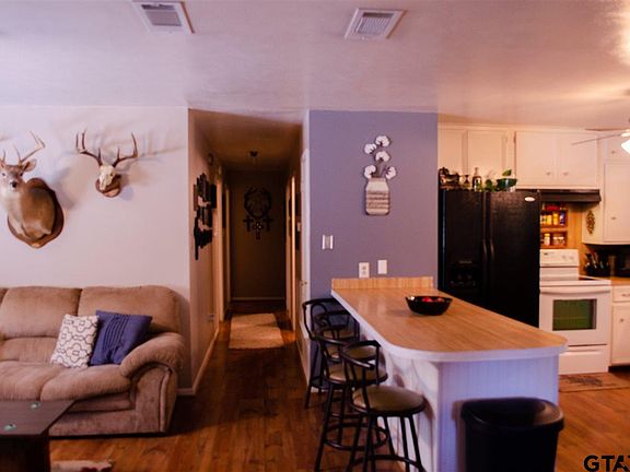 Come enjoy this clean well maintained home that is priced to sell! This 3/2 brick home is the perfect opportunity for a starter home, or to downsize in a peaceful neighborhood. 3 good sized bedrooms that include a great master suite will provide all the comfort you need. The open concept living/kitchen area provides plenty of space to put in your own flair. Looking for counter/bar space? Then you will love the kitchen! There are numerous updates and maintenance items including seamless gutters, new exterior doors, new toilets, and new tub in hallway bathroom. Home sits on approx. 1/3ac, and has a detached storage building next to the carport. It has all the appeal of small town living yet sits nestled in a great centralized location within 30-45 minutes of several popular East Texas cities including Nacogdoches, Jacksonville, Henderson, Palestine, Athens, and Tyler! Do not miss this opportunity!