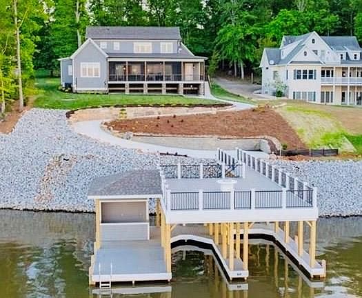 Extraordinary New Construction Main Lake Home by award-winning builder L&L of Raleigh, is professionally decorated with 4 Bedrooms, 4.5 Baths, 1 Undesignated Room, Dbl Boathouse, Dbl Garage, an awesome screened porch w/ a stone FP, Sealed crawlspace, 50 yr warranty arch shingles, Fiber cement 50 year warranty siding, Pella windows/doors (non rot), Irrigation, Uplighting, Epoxy garage floor, Golf cart parking station under deck, Custom concrete walkway to the dock, Outdoor gas fireplace, Fire pit on top of dock, LVP flooring, Music/Speakers throughout, Custom trim work/accent walls/ceilings, Solid core interior doors, Prep station for grilling w/ beverage refrigerator, Hidden bonus room over garage, Custom stair lighting, Tankless hot water heater, Thermador Appliances..... landlofraleigh.com
