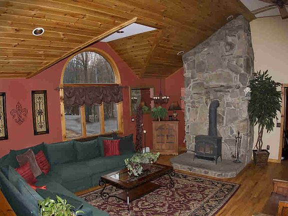 BEAUTIFULLY MAINTAINED, 8 BR, 4 BATH CONTEMPORARY WITH 3 CAR GARAGE LOCATED IN THE SERENE MOUNTAINS OF UNIONVALE, NY. THIS PROPERTY IS IDEAL FOR USE AS A FAMILY COMPOUND, OR MULTIFAMILY HOME. FEATURING CUSTOM WOOD CABINETS, VAULTED CEILINGS, PELLET STOVES, FLOOR TO CEILING STONE FIREPLACE, MASTER BEDROOM SUITE WITH SPA, 3 BR APARTMENT WITH FIREPLACE. LARGE BONUS LIVING SPACE OVER THE GARAGE. ALSO ROOM FOR A HOME GYM. TONS OF STORAGE. ENJOY THE OVERSIZED DECK AND GAZEBO SET ON ALMOST 4 ACRES OVERLOOKING POND WITH MOUNTAIN VIEWS. MUST SEE.