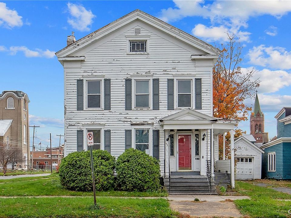 This spacious 5-bedroom, 2-bathroom single-family home in Rome, NY offers an impressive 3,088 sq ft of living space and endless potential. With a 1-car detached garage, full attic, and basement, there’s no shortage of room to grow, create, or simply enjoy. Conveniently located near Erie Blvd, you’ll have easy access to restaurants, shops, and entertainment right at your doorstep. Recent updates bring both comfort and peace of mind, including all new windows, fresh interior paint throughout, new drywall, and all new flooring on the first level. The renovated full bathroom features a beautiful clawfoot tub and separate shower, while the kitchen boasts a new backsplash and subway tile for a modern touch. Additional upgrades include new plumbing, an updated electrical panel and gas line brought up to code, and a 6-year-old HVAC system. The porch has been restored to its original charm, and an additional bedroom with an attached full bath has been added—perfect for guests or flexible living arrangements. With modern updates, and unbeatable space, this home is ready for its next chapter. This property offers the perfect opportunity to do it all. Come see the potential and make this spacious home yours!