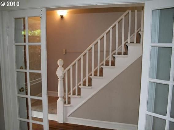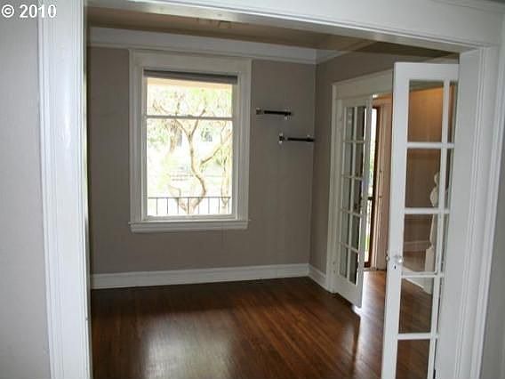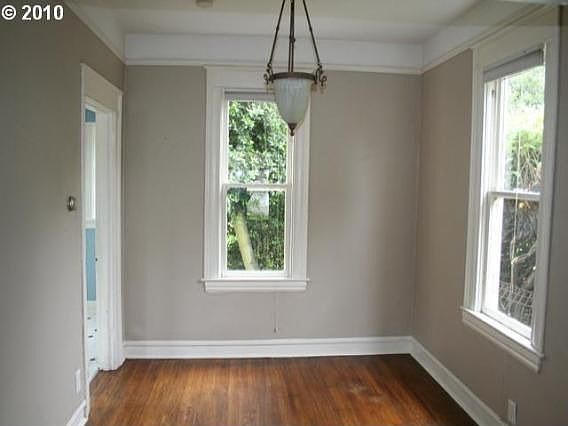 Light-filled, move-in ready home in close-in neighborhood. Beautiful hardwoods throughout main and upper levels. High ceilings, French doors and picture moldings in living room. Clawfoot tub and original built-ins in bath. Newly painted outside. Forced air gas furnace. Private lot surrounded by trees. Includes refrigerator, washer, dryer and gas range. Walk Score of 80.