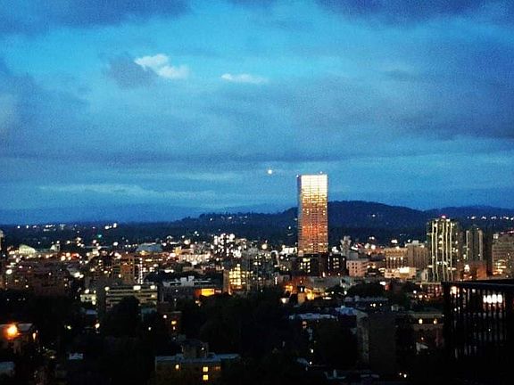 Views! Sunrise, Mt Hood, city-scape & forest. Wine on the deck. Ahhh. High above town & great access to PDX's best. Bus, 3 Parks, uptown/NW 23rd shopping, 3 hospitals close by. Stainless appliances, stacked washer/dryer, custom pot rack & portable A/C stay. Park right in front - no climbing up stairs in the rain! Enjoy single-level living + shelf pull-outs, 1 curb step from parking lot & step-less entry for accessibility. NEW PAINT & FLOORING!Park in #12.