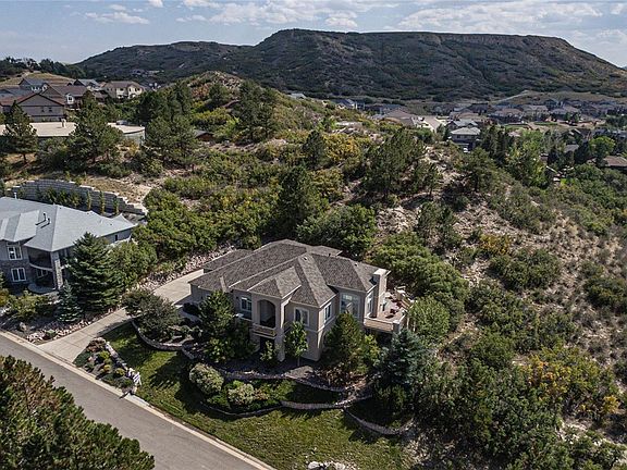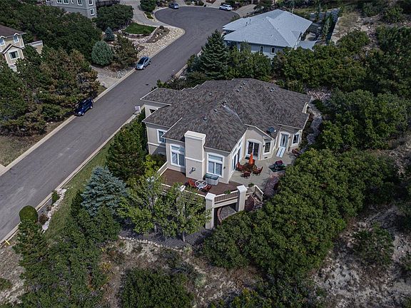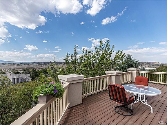 Come see this superb custom Ranch built by Valentine Homes on a premier site in the Estates above Plum Creek! The home sits up high on a private Cul-de-sac, perfectly situated to optimize the stunning panoramic views of Colorado's Rocky Mountains, the Front Range and Plum Creek Golf Course. This great floor plan flows beautifully to outside patios and decks ideal for entertaining alfresco and enjoying daily mountain vistas. Inside is a gorgeous open floor plan with vaulted, 12 ft ceilings on the main, abundant natural light, gleaming hardwood floors, living room with gas fireplace & built-ins, formal dining room. The Gourmet kitchen features a large eat-in area with access to the patio, Granite counters/ breakfast bar, a large pantry, double convection & self cleaning ovens, built-in desk and pendant lights. The spacious main floor master suite offers a 5-piece bath with jetted tub, walk-in closets and access to the private patio area. Second bedroom on main is currently used as a study and has an adjoining full bath. Enjoy a fully finished walkout basement, a great entertainment space with gas fireplace from which you can step out onto the covered patio. There is also a guest bedroom, full bath and ample storage area. The home backs to open space with abundant wildlife. You'll enjoy beautiful professional landscaping which is low maintenance and partially Xeriscaped. New furnace & hot water heater 2018, new AC coil 2020, new refrigerator and dishwasher 2020. Oversized 3-car garage. Benefit from low taxes and HOA fees (merely $25/month) for entrance/common area/tree maintenance. Truly a great residence suited for Colorado style living!