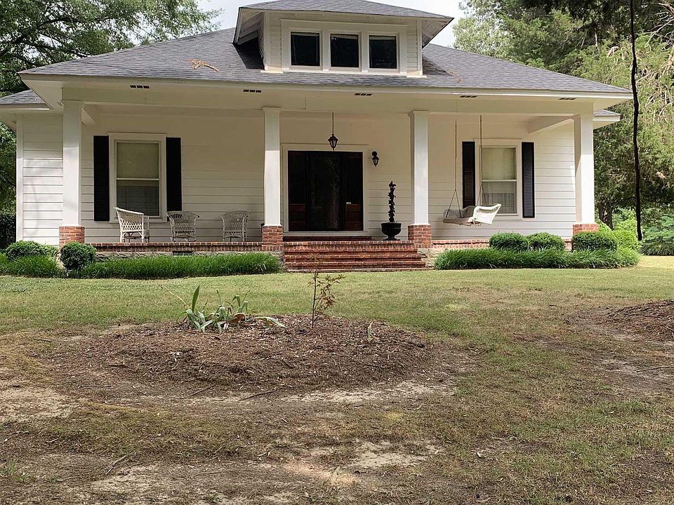 Country living with a plantation feel all with 12.5 acres. Partial tract across the street to protect your view while lounging on the enormous front porch. This home features a front living area with its own privacy perfect for an elderly parent or a teenager; includes a master bedroom. living area and library room. Large dining room with open cooking area that includes its own wood burning fireplace. Upstairs living has bonus room, full bath, bedroom and a separate office space. WELL MAINTAINED!!