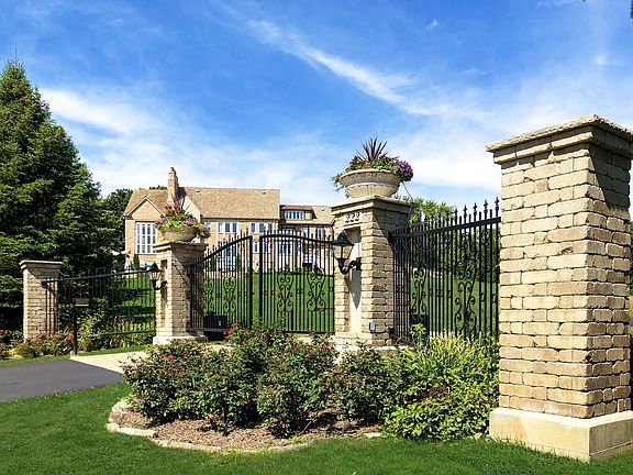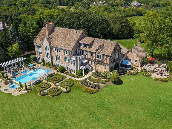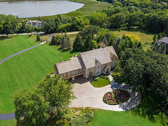 Prepare to be awed by this magnificent English Manor country estate gracefully presented high on the hilltops overlooking Goose Lake, an unrivaled expression of artistry and fine craftsmanship. Incredible privacy and solitude reign within the gated six-acre compound. A winding drive guides through rolling terrain, lush landscape, and picturesque gardens toward the impressive circular drive of this enduring dwelling. While grand in stature, this home was intentionally designed for luxury and comfort spanning multiple levels with 6 bedrooms, 6.1 bathrooms, and a four-car garage with parking for five vehicles, all encompassed within a brick and stone facade and topped by a steep gabled roof, reminiscent of a bygone era. The north-facing property incorporates a main house, guest house, and greenhouse connected by a charming breezeway and surrounded by a putting green, Infinity Edge pool with a Jacuzzi, expansive stone patios, two pergolas, and expertly manicured shrubs and trees, providing an outdoor leisure space that rivals the most exclusive resorts. Inside, volume ceilings, dramatic windows, and extensive millwork provide an air of grandeur harmonizing formal and informal spaces to perfection, ideal for hosting lavish gatherings or intimate dinner parties. An extraordinary example of meticulously planned design and flawlessly executed, premium construction, combined to create a once-in-a-lifetime opportunity!