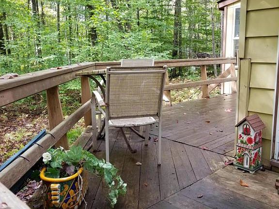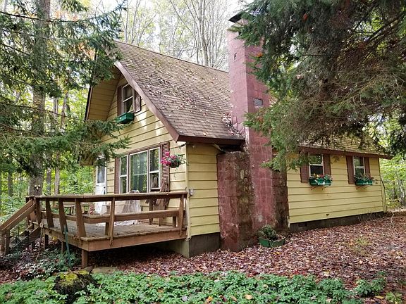 QUAINT CHALET SITUATED ON A WOODED LOT. FEATURES A WRAP AROUND DECK,SHED ,SCREEN PORCH, OPEN LIVING AREA WITH A NICE SIZE LOFT FOR EXTRA SLEEPING AREA . CLOSE TO THE LAKE & BEACH AREA.