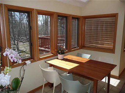 Sunlit, architect-designed contemporary home w/vaulted ceilings, skylights and windows allow you to enjoy the grounds and beautiful landscaping in any season. 3BRs w/Master Suite w/private library study, 2 walk in closets, and spacious master bath.
