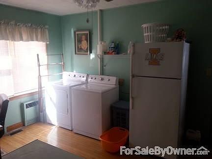 Living room picture window overlooks park right across from our home. Enjoy the spring and summer days on the 13x8 deck off the open kitchen and dining room area. We currently use bedroom #1 as a main floor laundry/computer/office area but it wouldn't take much to return it to its original purpose. There is an additional 540sq ft of unfinished space attached to the property. This space has the potential to be additional living space or bedrooms and includes a partially finished 2nd bathroom. It has been gutted down to the studs right now and is just in need of a handyman to finish it off to suit his family's needs. Also this property has a manual transfer switch in basement to backfeed electrical panel with a portable generator during power outages. We intend to take the gas range with us but there is a hookup for electric as well. The remaining appliances will be negotiable as well as some furniture. Additional property info: http://www.forsalebyowner.com/listing/3-bed-Single-Family-home-for-sale-by-owner-312-S-Broadway-St-61480/23976709?provider_id=28079