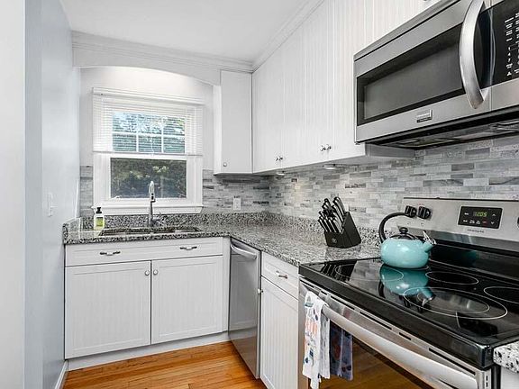 Step into this meticulously maintained West Falmouth 2 bedroom/2 bath condo near Old Silver Beach! This unit has been tastefully renovated over the last few years. Upgrades include; granite countertops, tile backsplash, kitchen appliances, remote capability mini splits, bamboo flooring upstairs, 50 gallon water heater, solid interior doors, Lutron smart switches, recessed lighting, stackable washer/dryer and all new paint throughout. The stunning upstairs full bath features glass doors, mosaic tilework, under vanity lighting and the shower length niche you've always wanted! There is nothing left to do but move in and enjoy!