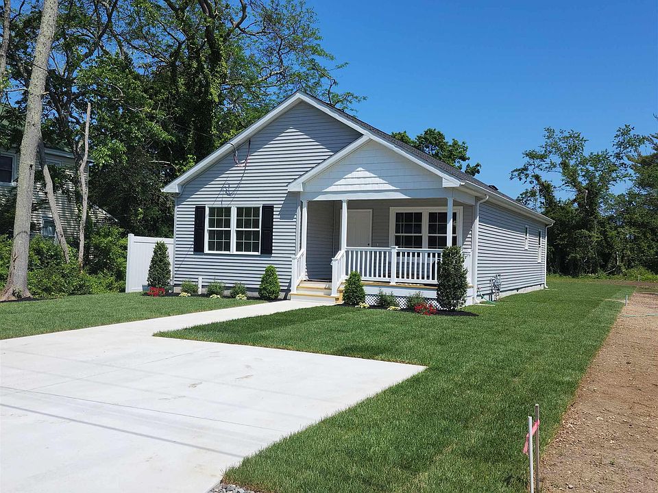 WELCOME HOME! Living is easy in this BRAND NEW Rancher in the heart of Cape May Court House. This home has 3 bedrooms, 2 full baths and sits on a 45 x 200' lot with sod in the front sides and a large portion of the rear yard, sprinkler system and landscaping. There is an 8'x 13' covered front porch, spacious living room, kitchen with lots of cabinets with soft-close drawers, granite counter tops and a tile backsplash. GE Stainless steel appliances and carefree luxury vinyl floor. The dining area has a sliding glass door to the rear 8' x 10' deck which leads to a large back yard with room for a shed, or pool, a firepit and outdoor entertaining. There is a full laundry room with washer and (electric) dryer hook-ups, plus the water heater and a storage closet. The main bedroom has a large closet and a private bathroom with a fiberglass tub surround and sliding glass shower doors. The other 2 bedrooms share a full hall bath. There are pull-down stairs to a storage attic. This home is modular construction which offers the added energy efficiency of 2" x 6" walls and R-21 Insulation. Conveniently located to shopping and dining as well as easy access to medical facilities and the Garden State Parkway. Just a few minutes drive to the Beaches of Stone Harbor or The Wildwoods and the Boardwalk. Peace of mind with a new home! Be sure to check it out before it's too late! Note: 3 of the photos have been virtually staged to show possible furniture layout. Furnishings not included. Available for IMMEDIATE OCCUPANCY.