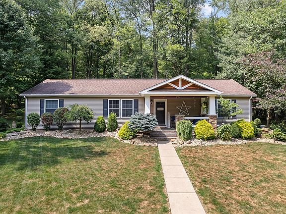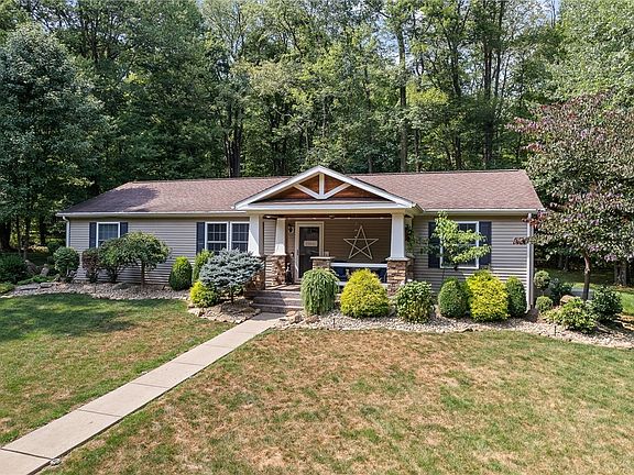 Discover the charm of this beautifully updated ranch-style home on a 1-acre lot, featuring an extended detached garage. Enjoy the ease of 1-level living with a spacious Primary suite, 3 bedrooms, and 2 modern bathrooms. The updated kitchen flows seamlessly into the open living and dining areas, perfect for gatherings. The expansive basement—the biggest you may ever see—offers endless possibilities for recreation, storage, or a home gym. Relax on your expansive stamped concrete patio and enjoy the woods behind the home. With stylish updates throughout, this home combines comfort, convenience, privacy, ample space, and a whole house generator, making it a perfect retreat. Don't miss this unique opportunity to own a slice of paradise!