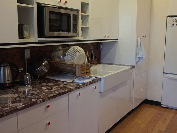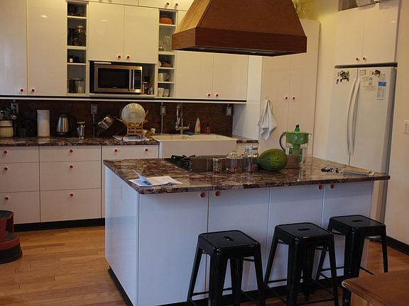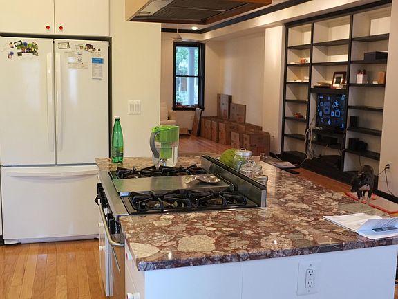 Spacious rowhouse with modern appliances. 3 bedrooms total. Two large bedroom/bathrooms and one small bedroom can be used as an office, a child's room, etc. Half bathroom on first floor. Gourmet kitchen with granite counter tops, custom cabinetry, large refrigerator and commercial style stove. Stacked washer and dryer. Built in book shelves. Radiant heated floors. Bedroom dimensions Bedroom One: 11.5'x 15' with a 3.5'x5.5' BedroomTwo: 11' x 14' Bedroom Three: 7.5' x 9' Bloomingdale is a fantastic neighborhood. It has a very high walkability, cycling and transit scores on walkscore. Walking distance to Red Hen, Boundary Stone, Big Bear Cafe. Around the corner from DC City Smokehouse. One year lease. One month's rent required for deposit. Owner pays water. Tenant pays gas and electric.