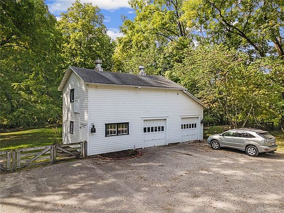 Enjoy in-town country living on 3.81 acres with a barn that serves as a two car garage and workshop, a 20 x 40 (800 sq ft) chicken coop that has been converted into a party house, and two acres of woods that back up to the Hobart Nature Preserve. The barn's hay loft provides a large storage space; the chicken coop/party house, with electricity and running water, has an attached 20 x 10 deck on the back for a quiet, peaceful retreat. The home, surrounded by nature, offers 3,200 sq. ft.of living space with double doors and hardwood floors throughout the first floor. The knotty pine paneling in the cozy den and family room exude old world charm, as does the quaint front porch. Wood burning fireplaces in the den and family rooms add to the ambiance. A large picture window in the family room looks out onto the mature trees and a spacious side yard. A nook (7x7) off the kitchen is used for a bar area (wet bar), storage and a computer room. The expansive 2nd floor master suite, complete with sitting area, dormer-encased sleeping or reading nooks and a full bath and mini split unit. There is also an adjoining area that could be used as a nursery or office overlooking the lush green rise of the property. The home is rich in history with breathtaking views and expansive rooms.