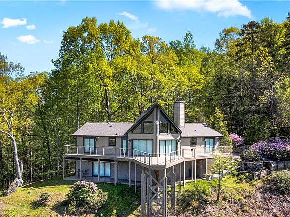 Priceless views and privacy abound at this one-of-a-kind mountain retreat surrounded by almost 15 wooded acres near Table Rock State Park. The 270-degree panoramic landscape includes Table Rock, Table Rock Reservoir, Greenville Watershed, Caesars Head, Mountain Bridge Wilderness Area and more. Situated in the low-key River Bluff community, “Skyview” is a 3 bedroom, 3 bathroom home, showcasing a large composite deck with a “Skywalk”, offering immersion in breathtaking sunrises, sunsets and ever-changing seasonal beauty. The main floor features two bedrooms, two bathrooms, an open floor plan den and kitchen, with a wood burning fireplace and upstairs loft. Downstairs reveals another bedroom and bathroom with a private patio, a recreation room and a large storage area. Whether as a permanent home or a mountain getaway, this private, gated treasure is only a short distance to local cities, state parks, forests, lakes, vineyards and other attractions. Additional residences could be built on the three included lots or they could remain natural forested environment serving to insulate the existing home. Never-before listed, this unique, hidden-gem shines with opportunity. Showings limited to serious buyers only.