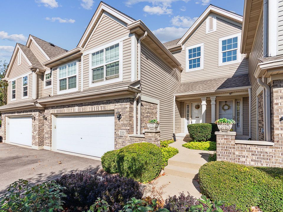 Step into this breathtaking 3-bedroom, 3.1-bathroom townhome, nestled in the coveted River Mist on the Fox subdivision. This exclusive community of 80 townhomes is surrounded by lush, landscaped open spaces adorned with trees, prairie grasses, tranquil ponds, and walking paths, offering a serene and picturesque retreat. This home boasts a bright and airy open floor plan, anchored by a two-story living room with stunning Palladian windows and a cozy gas fireplace. Step out onto the deck and take in the serene pond views. The kitchen is a delight, featuring cherry cabinets, a breakfast bar, and ample counter space, seamlessly flowing into the formal dining room. A convenient first-floor laundry room enhances the home's practicality. The mid-level hosts the 2nd and 3rd bedrooms, along with a full hall bathroom. Ascend to the upper level to find a charming loft that overlooks the living room. The luxurious primary bedroom offers a private retreat with a walk-in closet and a double sink with a vanity area. The finished walkout basement is perfect for entertaining, complete with a full bathroom, a large family room, and access to an inviting patio. Additional features include a two-car garage, a new HVAC system installed in 2023, and a water heater from 2019.
