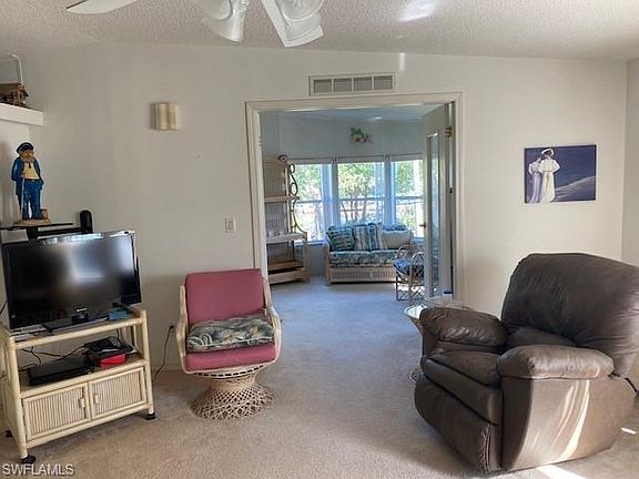 WATERFRONT HOME BETWEEN NAPLES AND MARCO ISLAND.RIVERWOOD ESTATES 55+ BOATING COMMUNITY. HOME ON WATER HOA $198. ANNUALLY. YOU OWN YOUR LAND. This 61 foot of waterfront lot alone is valued at $200,000. per comparison sales of waterfront lots in last 6 months in neighborhood. Community boat ramp and dock. 20 minutes to the Gulf of Mexico or lunch by boat in Naples or Marco Island. This 2 Bed/2 Bath w/Flex Room original owner Jacobson Home built 1999 sits on 0.19 acre waterfront lot with Gulf access. Beautifully maintained landscaping. Patio & screened lanai for outside entertaining. roof replaced 2016. A/C brand new. Carport is 30' ft. long to accommodate large boat or camper. Home is 1340 Sq. Foot under air. Open concept dining room/ Livingroom. Lots of windows to let in natural light. Pest control service has been maintained from day one.
