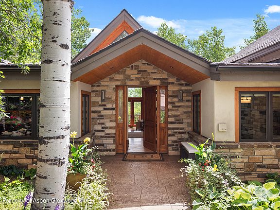 Enjoy living in this custom, well-maintained home with vaulted ceilings and breathtaking views towards Independence Pass. Take in beautiful natural light during the day and experience late afternoon Alpen glow from the living/dining area or outdoor covered patio. Thurston designed chef's kitchen with custom cabinets and built-in breakfast nook. Main floor primary bedroom suite with views toward Aspen Mountain. Vaulted ceilings, two walk-in closets with custom built-ins and closet system. Primary bath with steam shower, bubble-jetted tub, dual sinks, and Toto toilet room. Main level powder room conveniently located off of mud room and 2 car attached garage with attic storage. Stairwell leads to a lower walk-out level with 3 guest bedrooms (1 currently used as a flex-tv room with custom bookshelves and cabinetry) and two guest baths. Walk outdoors to your newly installed putting green.
