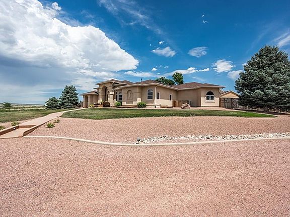Take a look at this meticulously maintained one-owner custom home located in Pueblo West on 2.66 acres. Spacious kitchen has custom cabinets with granite countertops, a new Kitchenaid Convection Double oven, and a Jenn-air stove top. The kitchen is open to the main living room and is perfect for entertaining. Includes a wet bar with a mini fridge, a surround sound speaker system, and a fireplace wood insert including a blower. The grand foyer has a 16 ft ceiling and the formal living and formal dining room feature 14ft ceiling height. Quality construction throughout with beautiful hardwood floors, the primary bedroom has crown molding and a recently installed shiplap wall, and 2 closets. The primary bathroom has a jet tub and the walk-in shower has cultured marble! The other two bedrooms are joined by a bathroom. There is also a guest bathroom off of the living room with a door to the covered patio. The laundry room has been expanded with a deep sink and extra storage. The front of the house has efficient Low E-windows. The basement has additional laundry hookups plus there is a laundry chute in the hallway above. This home has two furnaces and two central AC units just installed in 2020. Both garage and the 30'x40' workshop are heated. The workshop has 10x10 garage doors, a swamp cooler, and a compressor. Great backyard is fenced with tiered landscaping. Must see to appreciate!