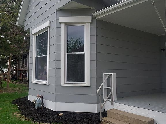 NEW ROOF TO BE INSTALLED BEFORE CLOSING. This cute home has everything done and the payment beats rent. This is a totally remodeled, 2 bedroom bungalow with spacious living space. Large living room, dining room, kitchen, bathroom, up laundry, 2 bedrooms and enclosed back porch. Replaced windows. Furnace, A/C, H2O heater , wiring, plumbing, flooring , paint , bathroom and kitchen all new in 2024. Deep corner lot. 2-car detached garage. Spacious , useable basement.
