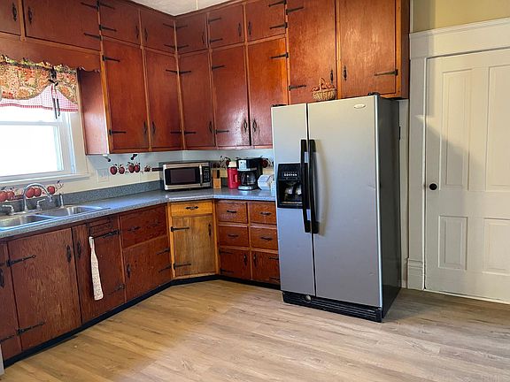 3 bedroom house within walking distance of downtown Plymouth; new metal roof; main floor laundry room and main floor bedroom; nice corner lot with a fenced back yard; two car detached garage; gas furnace and central air conditioning; eat-in kitchen plus a formal dining room; possession on final closing; $154,500.