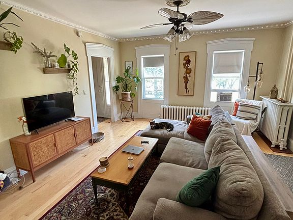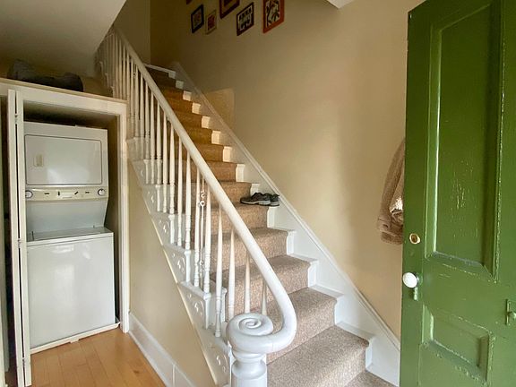 This isn't just a townhome, it's a charming retreat nestled in a peaceful triplex, offering the best of both worlds: tranquility and an unbeatable location! Step inside and be greeted by the warmth of hardwood floors and the character of historic woodwork throughout. The modern kitchen, complete with stainless steel appliances (including a dishwasher!), will inspire your inner chef. Imagine cozy evenings in the dining room, gathered around the accent fireplace, creating memories with loved ones. The well-lit living room, with its versatile pocket doors, provides the perfect space for relaxation or entertainment. Enjoy the convenience of in-unit laundry and say goodbye to laundromat trips! Upstairs, two generously sized bedrooms await, offering a peaceful haven for rest. The large bathroom boasts a luxurious marble-top vanity, adding a touch of elegance to your daily routine. But the true gem is the covered porch your private oasis for savoring lazy afternoons with a good book or your morning coffee. And with tandem parking for two vehicles included, you'll never have to worry about finding a spot. To top it all off, water, rubbish and recycling removal, plowing, and grounds keeping are all included, allowing for carefree living. This spacious, non-smoking home is ready to welcome you. Don't miss out on this opportunity to live in a beautiful, historic home with modern amenities in a prime location! At 1250 SqFt and 1 and a half baths this place is a true find! Contact us today to schedule a viewing! Lease would be from Dec 2024 to June 2025 Eligible to re sign a one year lease for June 2025 to June 2026