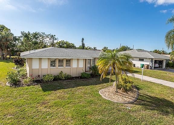 Great little cozy neighborhood located close to shopping and dining..The home has updated appliances & cabinets. Ceramic tile floors throughout , lots of little touches for that old Florida Charm you must see to appreciate. Large screened lanai with ceramic tile, huge back yard to add a pool or just enjoy the outdoors with that wonderful southern exposure. Tropical landscape as you approach the home with palms, walkway to the front entry with continuous curbing. Garage has storage shelving, washer/dryer and laundry sink. New AC installed in 2016 and new sprinkler system installed 2017..