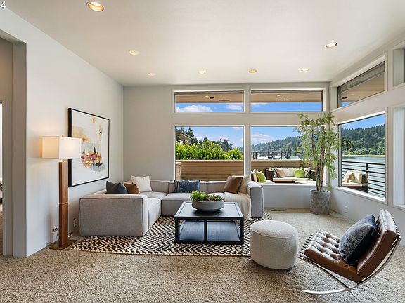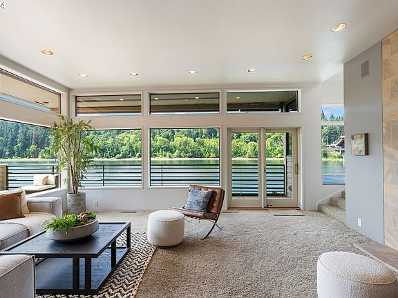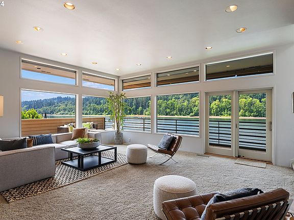 Open Sun 10/13 Noon-2pm! INCREDIBLE VALUE! Priced well below market! Luxury living in this private community w/unobstructed 180 degree views of the Willamette River, Sellwood Bridge and Waverly Marina! Resort-like amenities for an active lifestyle includes outdoor pool, popular tennis/pickle ball courts and gym/weight room – or grab your kayak, paddleboard or canoe for an active life on the river! Sellwood Harbor offers a gated entry & beautiful landscaping throughout. Vacation all year round watching abundant wildlife, river activities and gorgeous sunsets! This beautiful home has a reverse floorplan with ensuite bedrooms to take full advantage of the views. Abundant natural light pours in from floor to ceiling windows & large skylights. The expansive main level living features high ceilings, walls of windows, great natural light and of course the unobstructed views! Enjoy soaring ceilings, three fireplaces, high-end finishes, and multiple outdoor spaces. Extensive renovation of open gourmet quartz kitchen flows into newly elevated dining space. Expansive decks on two levels incl wrap around deck off living room - ideal for entertaining or dining alfresco! Gorgeous modern bathrooms incl full remodel of upper guest bath (2018), newer main floor powder bath & primary suite with dual walk in closets. Queen murphy bed in guest bedroom provides flexibility. Upper level multi-purpose loft serves as a versatile family room / home office space. Engineered hardwoods & new porcelain tile flooring in kitchen/baths/hallways. Upper level laundry & generous storage throughout! Built-in greenhouse on upper deck. Two convenient covered parking spaces, abundant guest parking + rare 2 separate storage units included! Custom electric external window shades. Newer: slider doors, H20 heater, two electric panels & A/C! Sellwood Harbor is situated in a close-in, walkable neighborhood with parks, Spring Water Trail, Sellwood cafes & shops and easy commuting to downtown, OHSU & more! [Home Energy Score = 3. HES Report at https://rpt.greenbuildingregistry.com/hes/OR10225799]