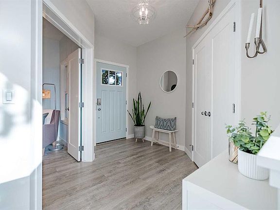 Welcome home to this stunning property in one of Airdrie’s most loved south communities, Kings Heights; with easy and quick access to Deerfoot. Perfectly tucked away on a quiet crescent, this home backs onto beautiful acreage properties, offering a rare sense of space and peaceful, country-style living just minutes from Kingsview Market, its amenities, and a nice selection of nearby schools. Inside, soaring two-storey windows flood the main living area with natural light — a breathtaking view you can also enjoy from the second level. The main floor features ultra-durable laminate floors, a spacious living room centered around a stunning feature fireplace, and a chef’s kitchen with upgraded appliances, and sleek quartz counter throughout. A main floor office/den conveniently placed by the front entrance provides an ideal space for work or study. Upstairs, you’ll find three spacious bedrooms, including a primary suite with a large walk-in closet with built-ins and a spa-inspired 5pc ensuite. You’ll love the open view of the main living area below, where sunlight pours through the dramatic windows. A spacious vaulted ceiling bonus room, along with wainscoting and feature walls throughout, add timeless charm and a perfect amount of living space. The undeveloped basement with a rough-in bathroom awaits your finishing ideas, while the double attached garage provides everyday convenience. Step outside to a large backyard with plenty of room to play, relax, and grow. This home perfectly blends light, luxury, and livability, offering the warmth of country charm with the convenience of city life.