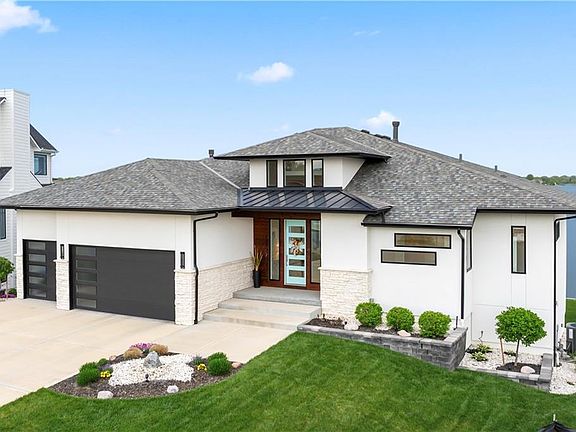 Deadline for offers is 5/12/25 at 5:00 pm. Better than New Lakefront Dream Home with Panoramic Views and 145 Sq feet of Premium Lakefront Shoreline! Less than 5 Years old, this absolutely gorgeous All Stucco Reverse Story Home with 4758 Gross Sq ft has a Coastal Vibe with Soaring Ceilings, Exceptional Window Package with remote blinds that leave no potential view missed, and Huge Contemporary Sliding Doors leading to the Covered Trex Deck and Patio with arguably some of the best views on the lake at Raintree. Every detail has been so well thought out from the amazing Curb appeal and landscaping to interior Designer Choices on Lighting Fixtures, Unique Ceiling Designs with a 16' Entry, Coastal Color Palette, Multiple Custom Tile/Quartz/Natural Stone Floors and Surfaces, Remote Blinds, Modern and Sleek Fireplaces, Contemporary Floating Shelves, and Custom Stair Railing System. Walk into an entire main floor of fabulous White Oak Wood Floors with the Large Great Room opening to a beautiful Kitchen with a huge White Quartz Island, Cooktop with Hood, Double Oven, Extra Large Pantry and lovely Breakfast Room Dining Area that takes in the awe inspiring views. The Master Bedroom will not disappoint with Recessed Ceilings and Wood Floors leading to the Spa-like Master Bathroom that has a combination of exquisite tile/stone/quartz materials. Entertainment options continue in the Lower Level Walkout with a spacious Family Room with Fireplace. On this level there is a 2nd Master Bedroom that has more coveted lake views and 2 other bedrooms and/or study (1 bedrooms listed as unconventional). The 2 lower level bathrooms continue the theme of high quality and designer materials. If you love NEW yet want to skip the build process plus all those details of landscaping, window treatments, and other move-in details then this home is for you! Here is your chance to experience Raintree Lake where you can Ski, Wakeboard, Boat, Fish, or just take in the View!