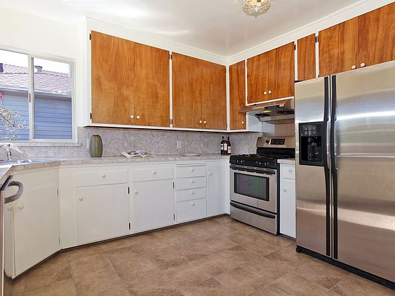 The unique color of this home has captured passersby’s attention for years, yet it is the peaceful garden surrounding this home that will melt future owners’ hearts. Built in 1940, this home has an open floor plan with quaint living and dining rooms to greet and entertain friends and guests. A sunny kitchen with lots of counter space and an eating area offers a direct view to blooming roses, shrubs and green open space. Many modern comforts have been added through the years such as a separate office, spa-inspired bath and more. Unlike its counterparts, this home comes with an abundant storage space. Located in Alameda’s lovely West End neighborhood and close to schools, parks, Webster shopping district, restaurants, a ferry station and much more. Come check us out, be pleasantly surprised and linger.